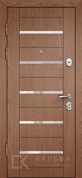 Фото «Входная дверь темный орех с узором внутри с планками металлик №573»