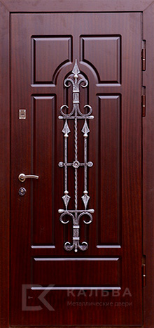 Фото «Железная дверь тёмная с ковкой и белой панелью для квартиры №18»