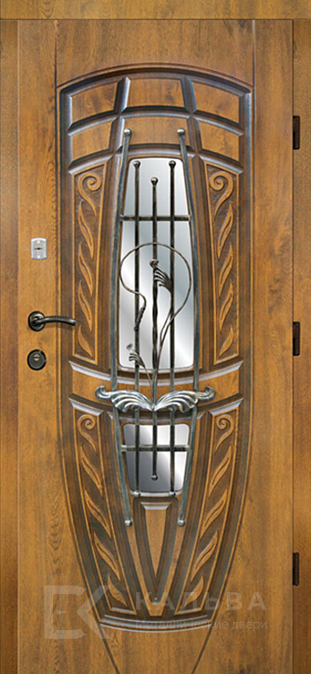 Фото «Стальная дверь под дерево с матовым стеклом и решёткой №22»