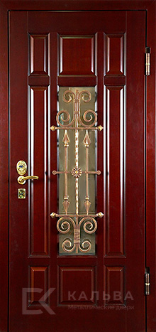 Фото «Входная дверь махагон остеклённая с кованой решёткой для частного дома №5»