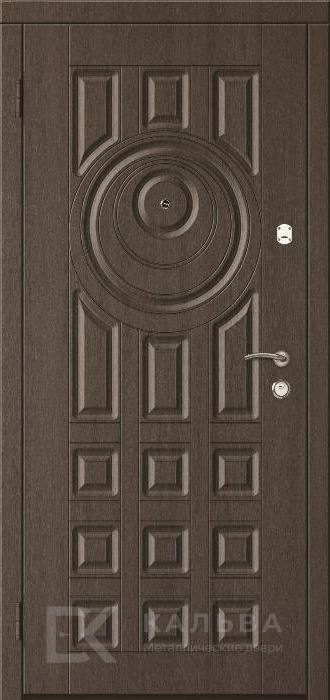 Фото «Стальная дверь орех с аркой внутри тёмная с круговым рельефом №363»