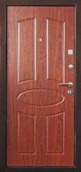 Фото №2 «Входная дверь для квартиры МДФ орех снаружи дуб светлый внутри №522»