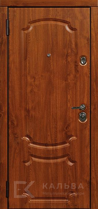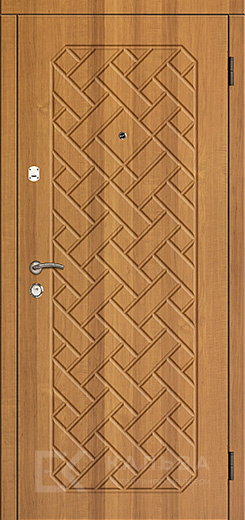 Фото «Железная дверь дуб светлый с плетёной фрезеровкой и орехом №28»