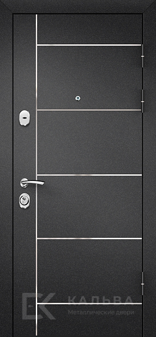 Фото «Металлическая дверь антрацит с линиями и панелью венге»