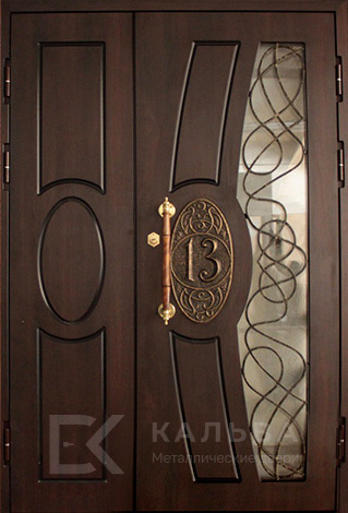 Фото «Металлическая двустворчатая дверь тёмная со стеклянной полосой и медальоном №110»