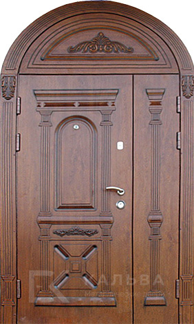 Фото «Металлическая арочная дверь тёмная с классической филёнкой №98»